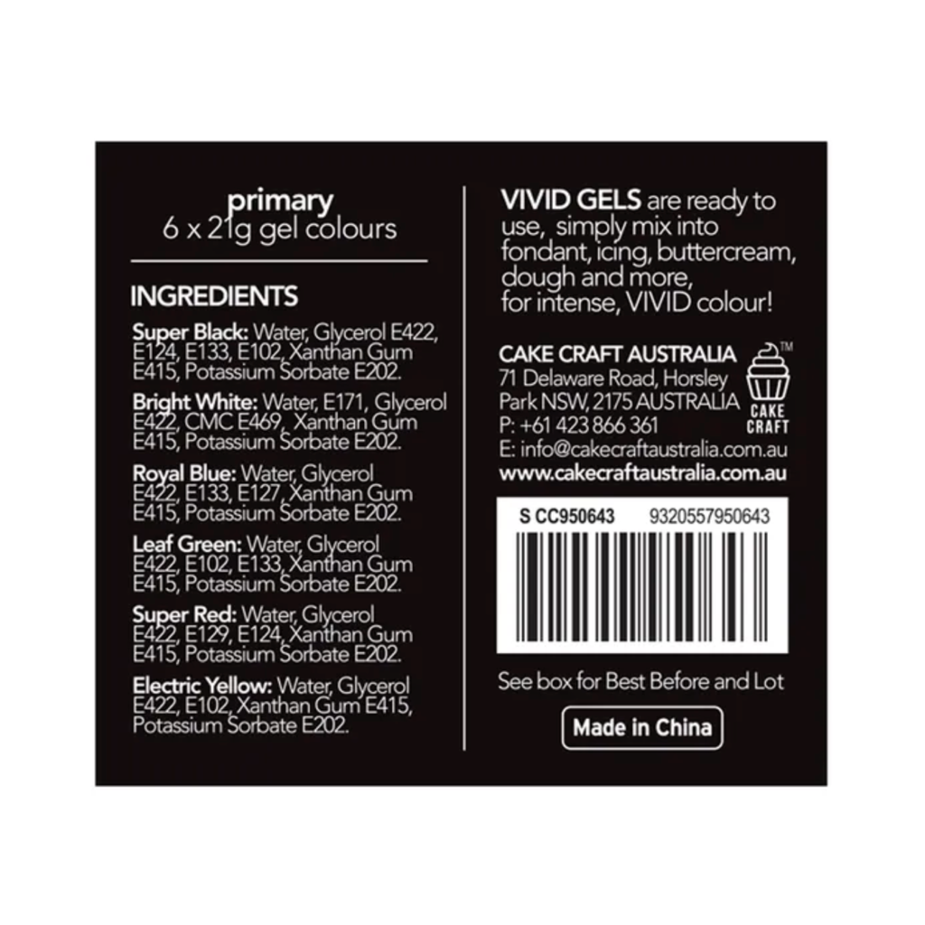 Vivid Primary 6 Pack Gel Colours 6 x 21g | BB 10/25